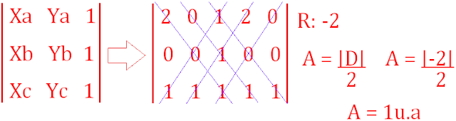 10) Vamos lançar os pontos no determinante e logo em seguida aplicar a fórmula da Área Triangular...